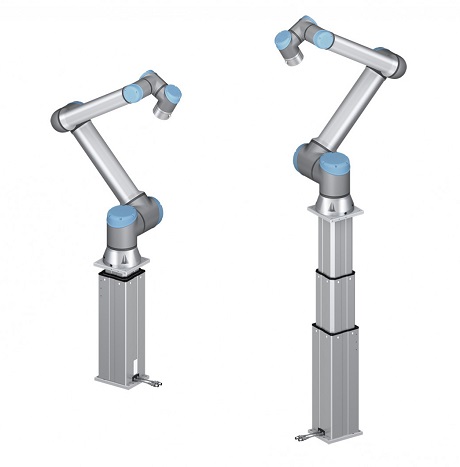 協(xié)作機(jī)器人通常用于碼垛,一旦碼垛達(dá)到一定高度,協(xié)作機(jī)器人也會達(dá)到其極限位置。易于組裝的升降柱組件通過沿垂直軸移動來增加機(jī)器人的可達(dá)范圍。 協(xié)作機(jī)器人底座可在碼垛過程中升高或降低,以使其始終處于實(shí)際需要的工作位置。這一范圍的提高了生產(chǎn)效率并降低了成本。 LIFTKIT-UR是一個可以即插即用的系統(tǒng),包括一個帶有UR安裝接口的升降立柱、一個控制器和一個UR控制系統(tǒng)的軟件插件(UR Caps),以便可以直接通過UR控制器編程移動。 UR安裝板和立柱配有額外的螺紋孔,以便連接外部電纜拖鏈系統(tǒng)。